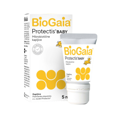 Kapljice BioGaia Protectis Baby so prehransko dopolnilo za varno, preprosto in učinkovito vzdrževanje ustrezne koncentracije mikrobiote v črevesju.